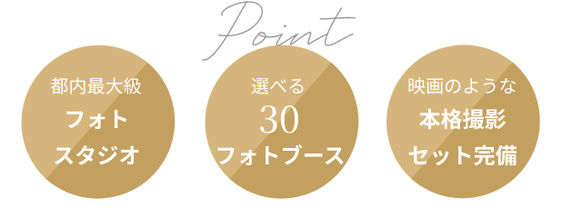 本格的なチャペルのようなセレモニースペースをご用意。写真を撮ることはもちろん様々な演出をすることも可能です。自然光が差し込むナチュラルスタジオや屋内家屋スタジオなど、二人の想いが叶う様々なフォトスペースをご用意しております。