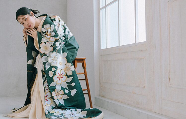 振袖は袖を振る所作に由来し、厄払いの意味があるため、結婚式では清めの装いとしても選ばれます。