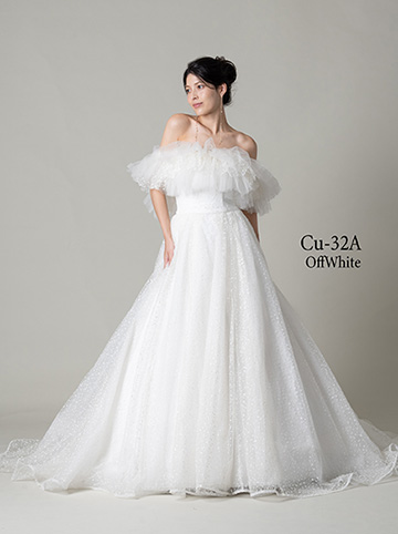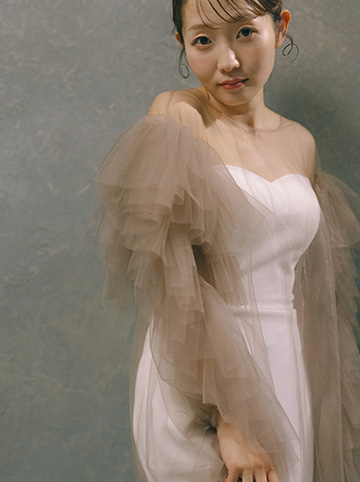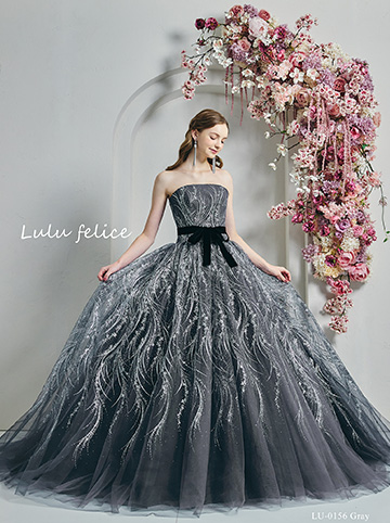繊細な色彩が生み出す透明感。ひと粒ひと粒にこだわったグリッターの輝きが、LuluFeliceらしいエッセンスを添えます。纏った瞬間、心がときめく憧れの花嫁姿へ。