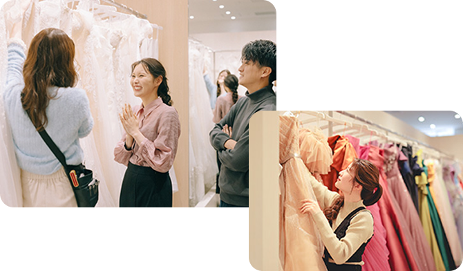 結婚式場と変わらない数多くの衣装から運命の一着を