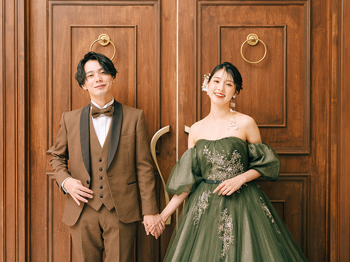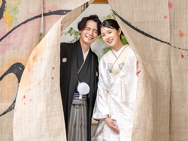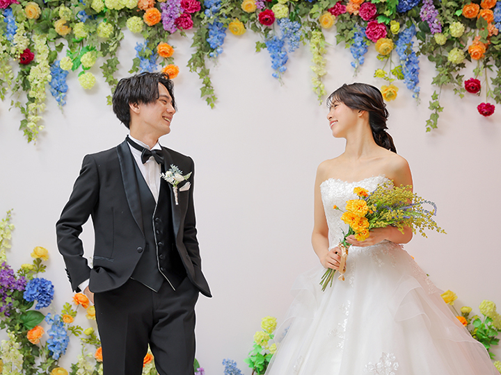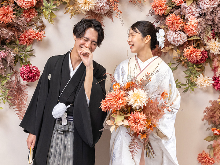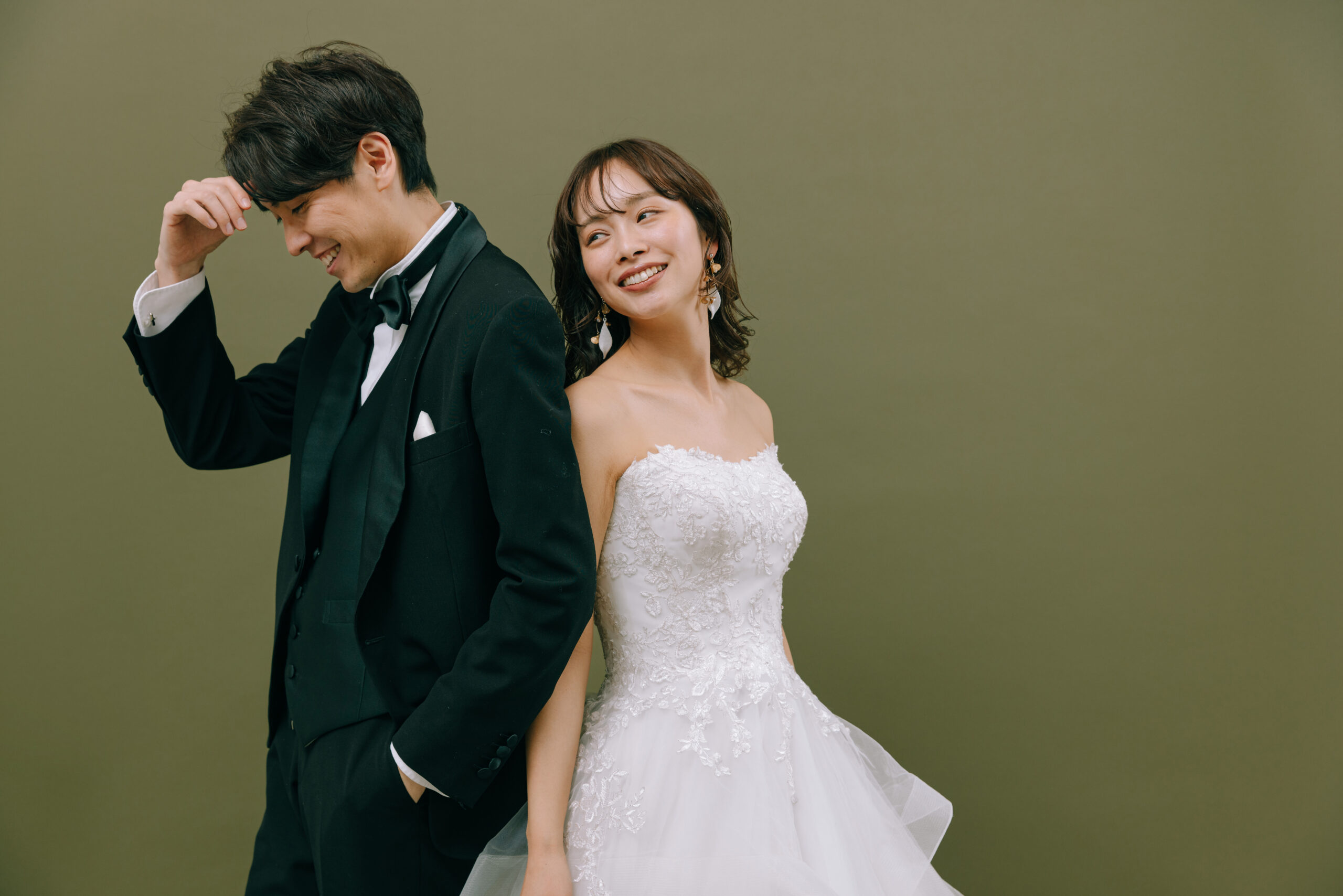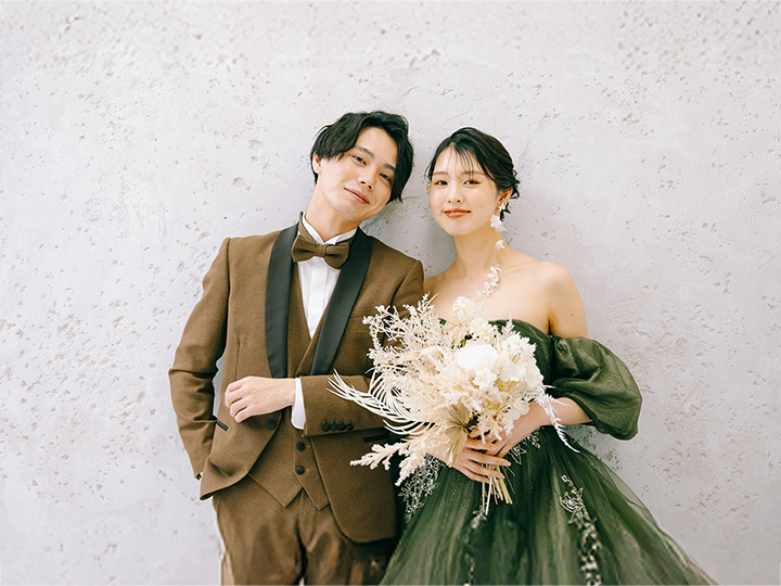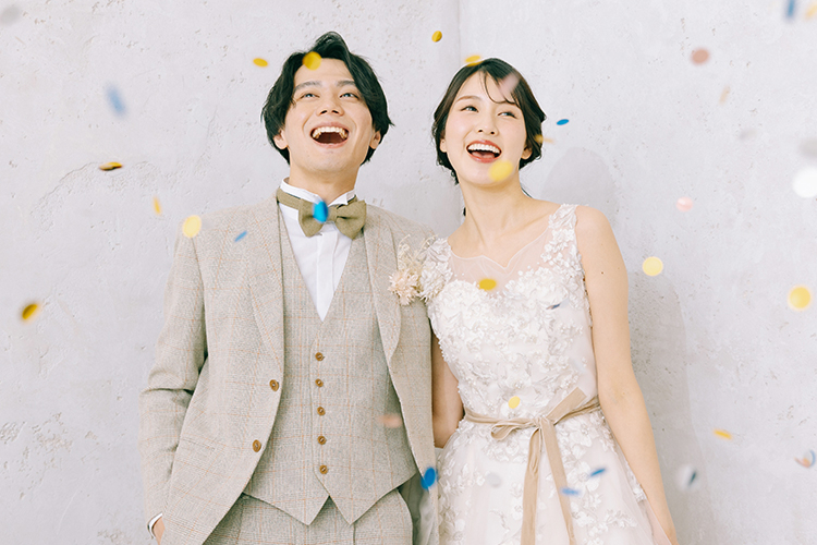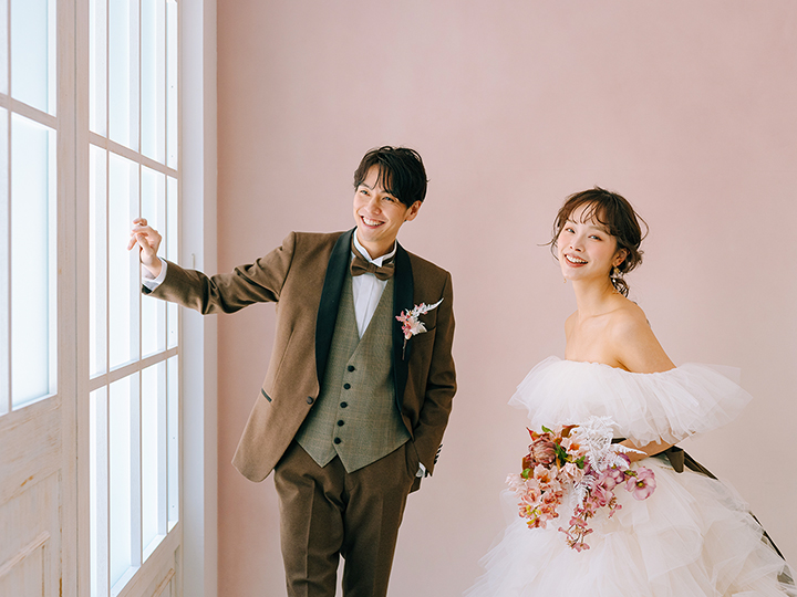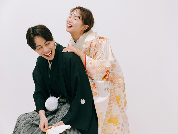 シンプルな背景だからこそ、アイテムやお二人の表情を豊かに表現できる。